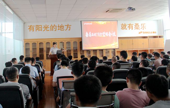 7月3日,桑乐集团召开万千招商行动动员会,集团领导,全国各区域分公司总经理、全体销售人员及销售平台人员参会,董事长莅临会议并作主旨发言。